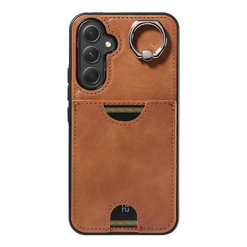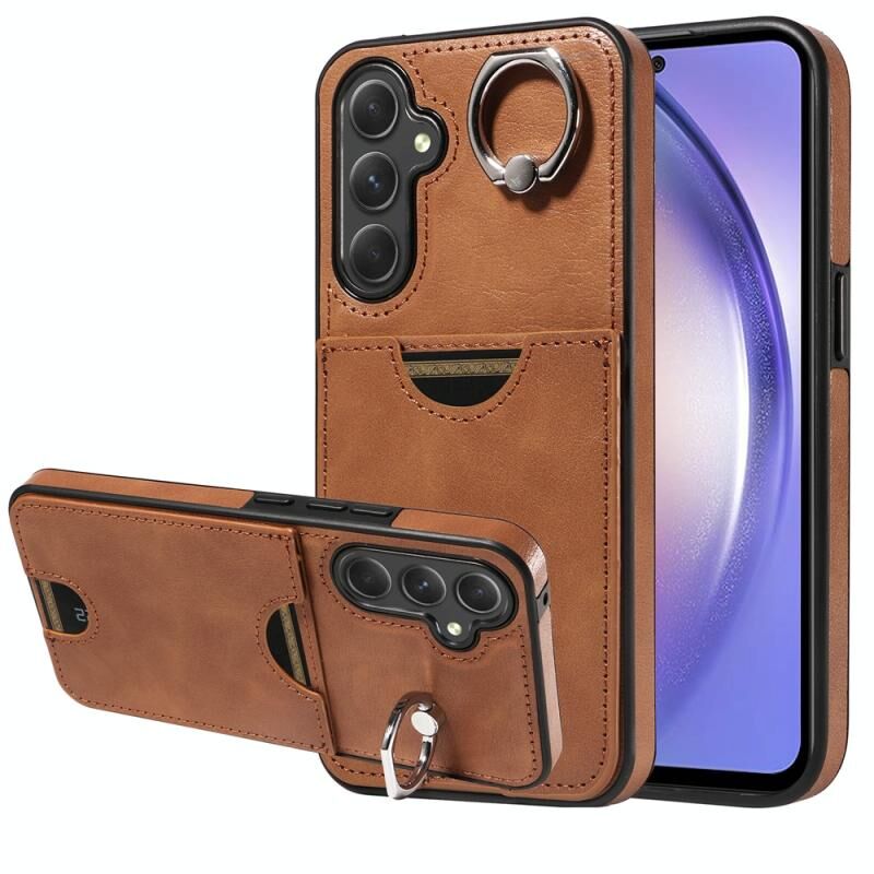 Για Samsung Galaxy A54 5G 5G Calf Υφή κάρτα Slot δαχτυλίδι κάτοχος υπόθεση τηλεφώνου (καφέ)