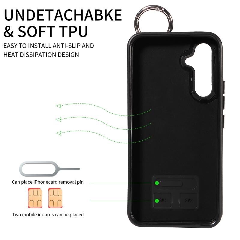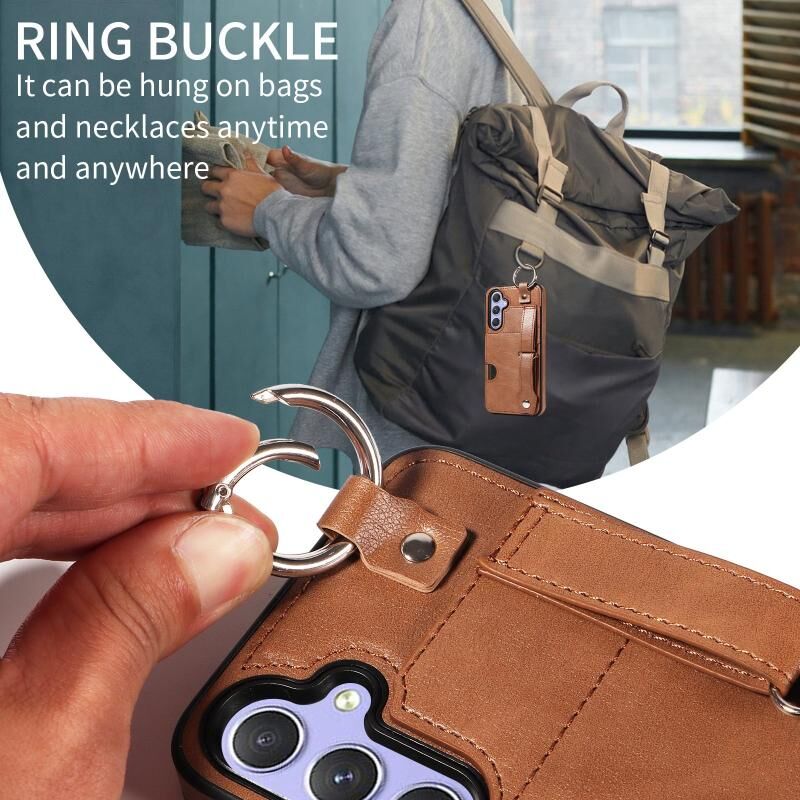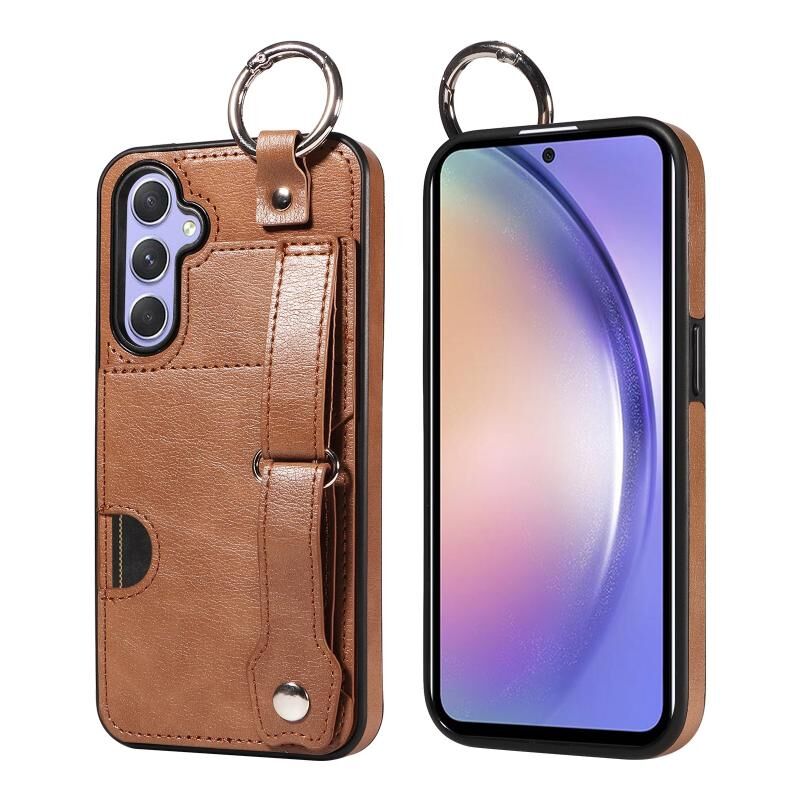 Για Samsung Galaxy A54 5G μοσχάρι υφή καρπού κάρτα Slot δαχτυλίδι υπόθεση τηλεφώνου (Καφέ)