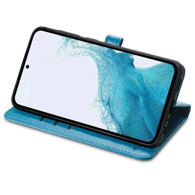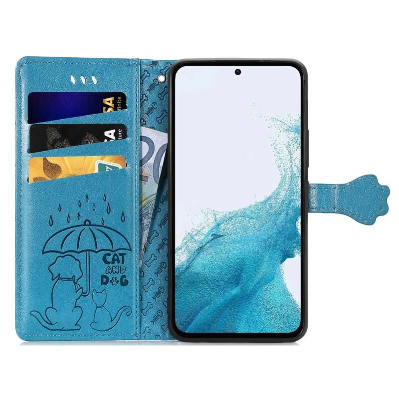 Θήκη τηλεφώνου Samsung Galaxy A54 5G με ανάγλυφο σχέδιο γάτας και σκύλου από δέρμα (Μπλε)