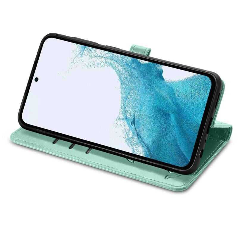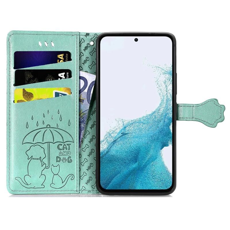 Θήκη τηλεφώνου Samsung Galaxy A54 5G με ανάγλυφο σχέδιο γάτας και σκύλου από δέρμα (πράσινο)