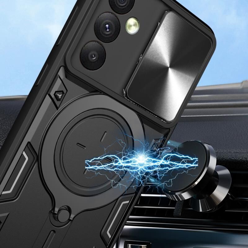 Θήκη κινητού τηλεφώνου για Samsung Galaxy A54 5G με υφή CD, συρόμενο προστατευτικό κάμερας και μαγνητική βάση (Μαύρο)