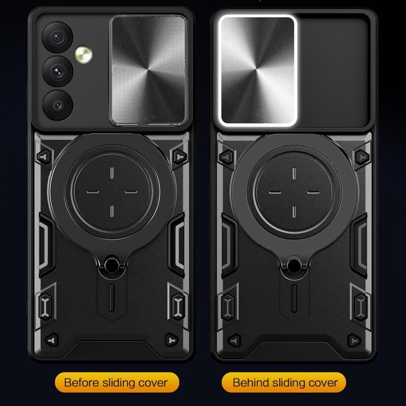 Θήκη κινητού τηλεφώνου για Samsung Galaxy A54 5G με υφή CD, συρόμενο προστατευτικό κάμερας και μαγνητική βάση (Ροζ)