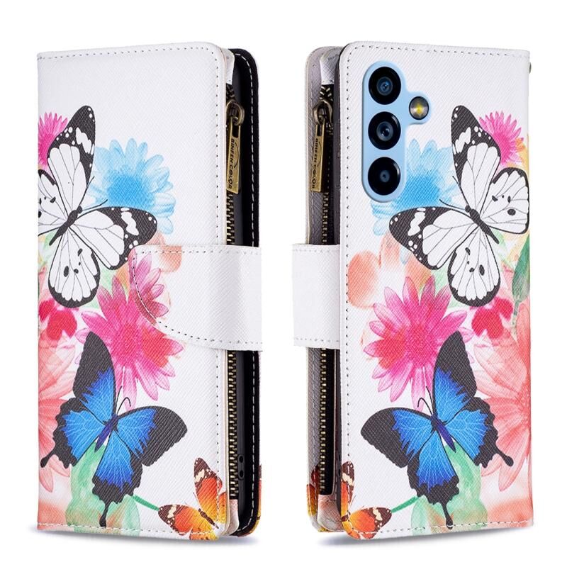 Θήκη τηλεφώνου Samsung Galaxy A54 5G από δέρμα με φερμουάρ και πολύχρωμο σχέδιο (Κόκκινο)