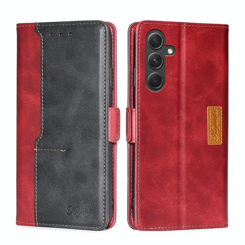 Για Samsung Galaxy A54 5G αντίθεση χρώμα πλευρά πόρπη δερμάτινη θήκη τηλεφώνου (κόκκινο + μαύρο)