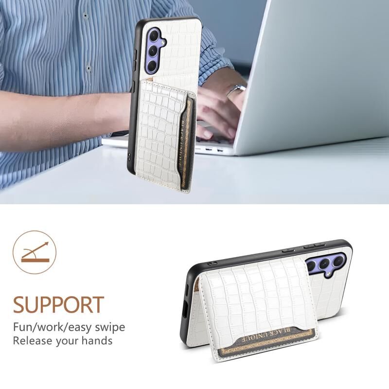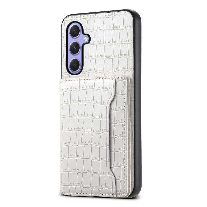 Θήκη κινητού τηλεφώνου πλήρους κάλυψης με σχέδιο τσάντας κάρτας και υφή κροκόδειλου για Samsung Galaxy A54 5G (Λευκό)
