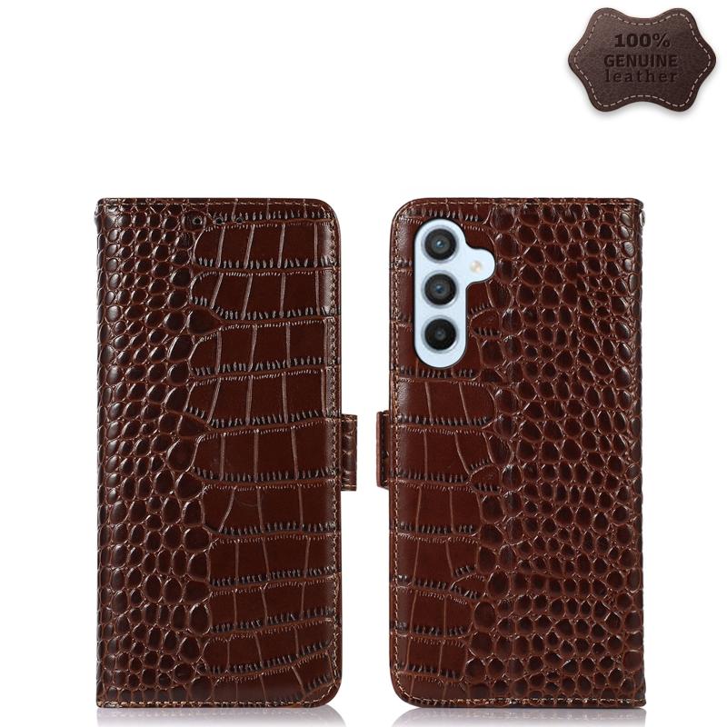 Θήκη τηλεφώνου από γνήσιο δέρμα αγελάδας με επικάλυψη κροκόδειλου για Samsung Galaxy A54 5G (Καφέ)