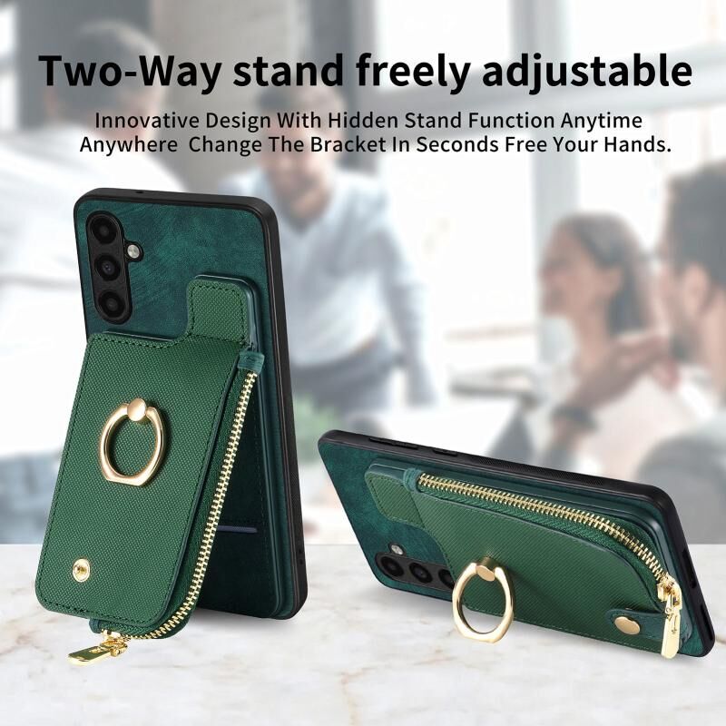 Για Samsung Galaxy A54 5G Cross Δερμάτινο δαχτυλίδι κάθετη φερμουάρ πορτοφόλι πίσω υπόθεση τηλεφώνου (πράσινο)