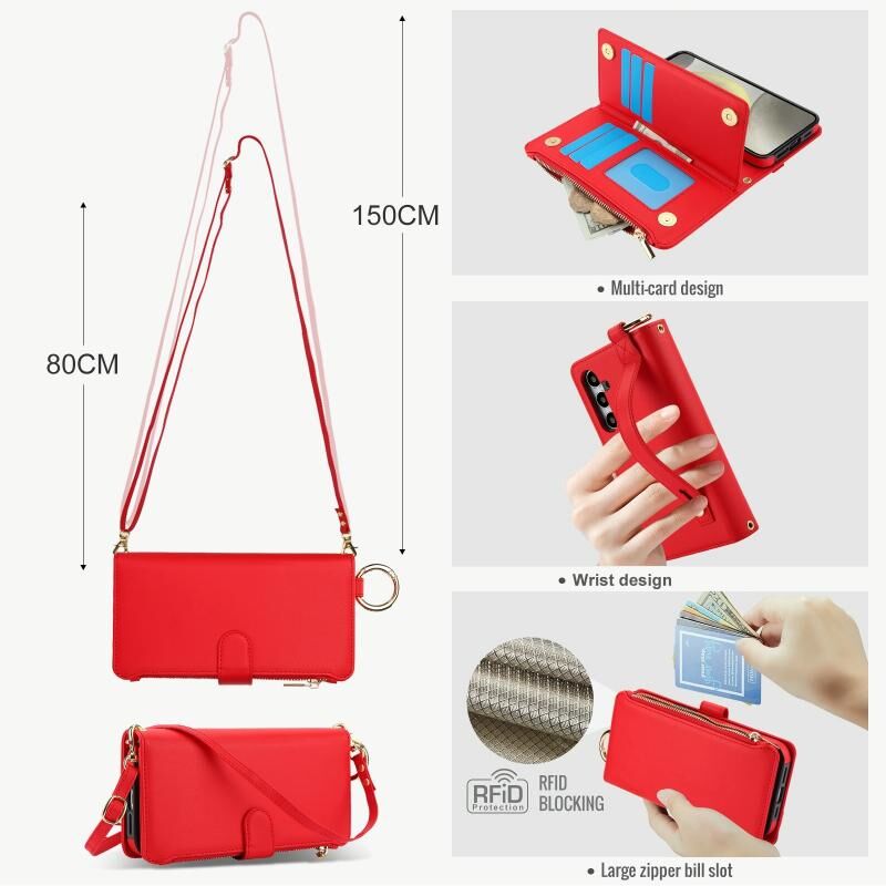 Για Samsung Galaxy A54 5G Δαχτυλίδι σταυρού Πολυλειτουργική θήκη τηλεφώνου δερμάτινο πορτοφόλι (κόκκινο)
