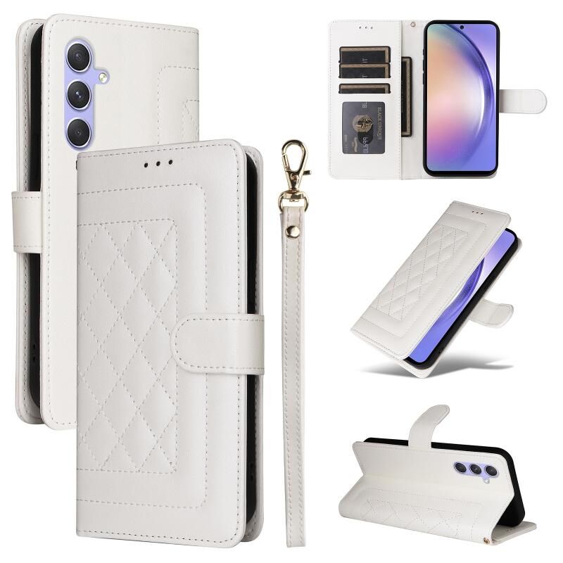 Για Samsung Galaxy A54 5G Diamond Lattice δέρμα Flip υπόθεση τηλεφώνου (λευκό)