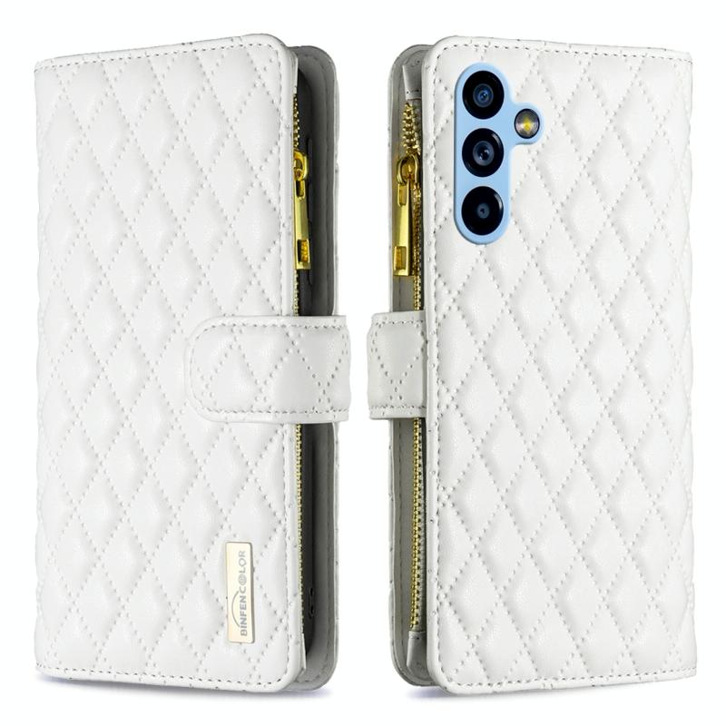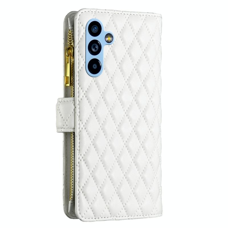 Θήκη κινητού Samsung Galaxy A54 5G, Δερμάτινη θήκη τύπου πορτοφολιού με φερμουάρ και διαμαντένιο πλέγμα (Λευκό)
