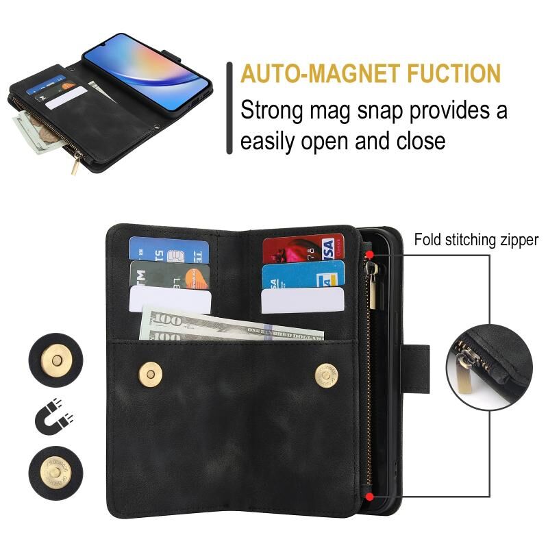 2. Λειτουργία πορτοφολιού πολλαπλών καρτών: 9 υποδοχές για κάρτες και 1 θήκη μετρητών με φερμουάρ για να αποθηκεύετε τις πιστωτικές σας κάρτες, μετρητά ή μικρά χαρτονομίσματα για τις καθημερινές σας ανάγκες.