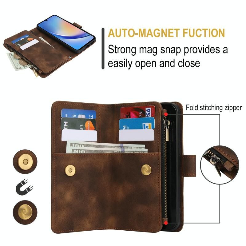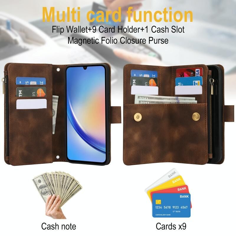 2. Λειτουργία πορτοφολιού πολλαπλών καρτών: 9 υποδοχές για κάρτες και 1 θήκη μετρητών με φερμουάρ για να αποθηκεύετε τις πιστωτικές σας κάρτες, μετρητά ή μικρά χαρτονομίσματα για τις καθημερινές σας ανάγκες.