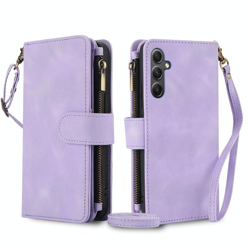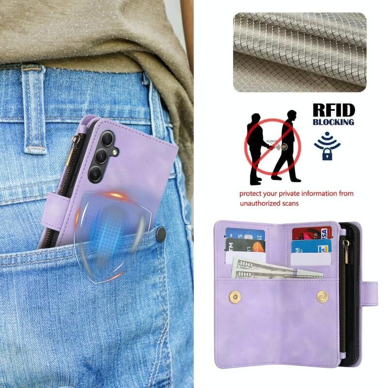 Για Samsung Galaxy A54 5G Dream 9-Card φερμουάρ πορτοφόλι RFID δερμάτινη θήκη τηλεφώνου με κορδόνι (μωβ)