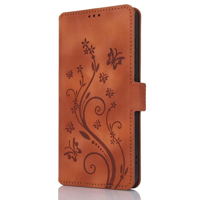 Θήκη τηλεφώνου Samsung Galaxy A54 5G με ανάγλυφο σχέδιο πεταλούδας, λουλουδιών και δέρμα (Καφέ)