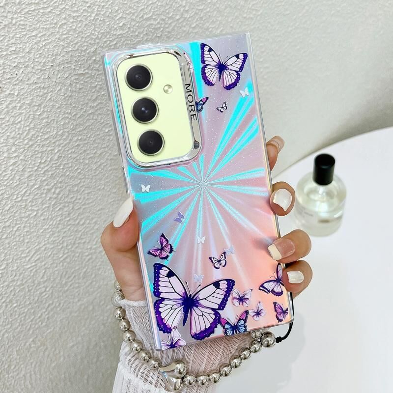 Για Samsung Galaxy A54 5G Electroplating λέιζερ πεταλούδα υπόθεση τηλεφώνου με λουράκι καρπού (μωβ πεταλούδες AB3)