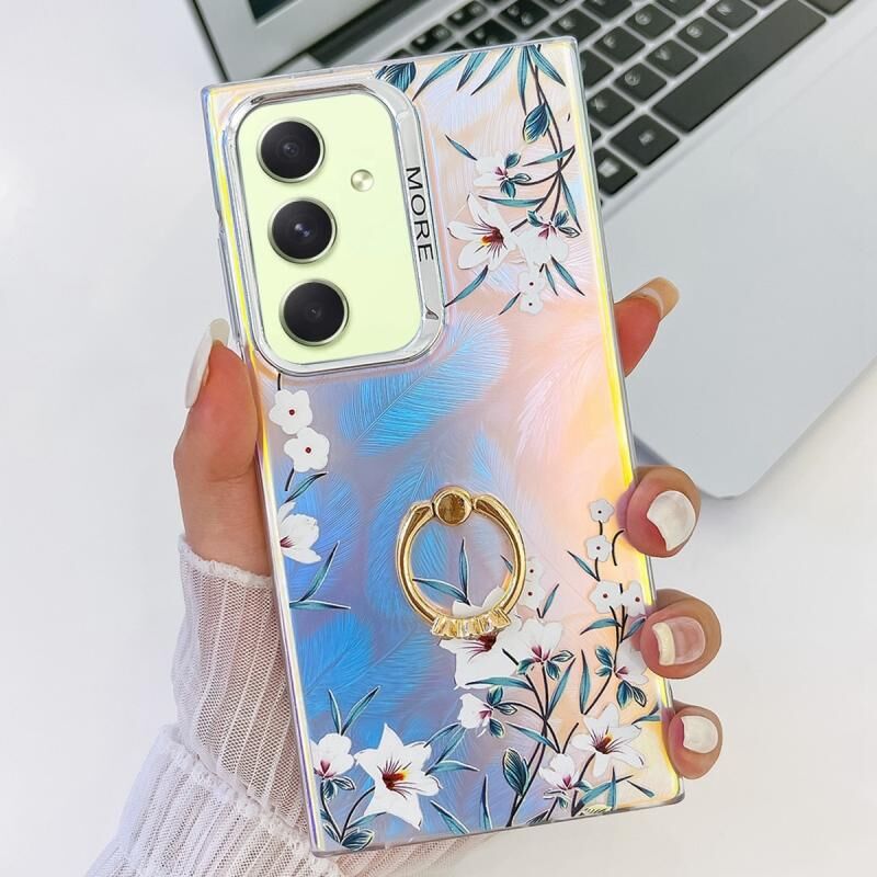 Θήκη τηλεφώνου TPU με δακτύλιο στήριξης και σχέδιο λουλουδιών με λέιζερ και ηλεκτρολυτική επικάλυψη για Samsung Galaxy A54 5G (Πρωινό Γλυνός AH16)