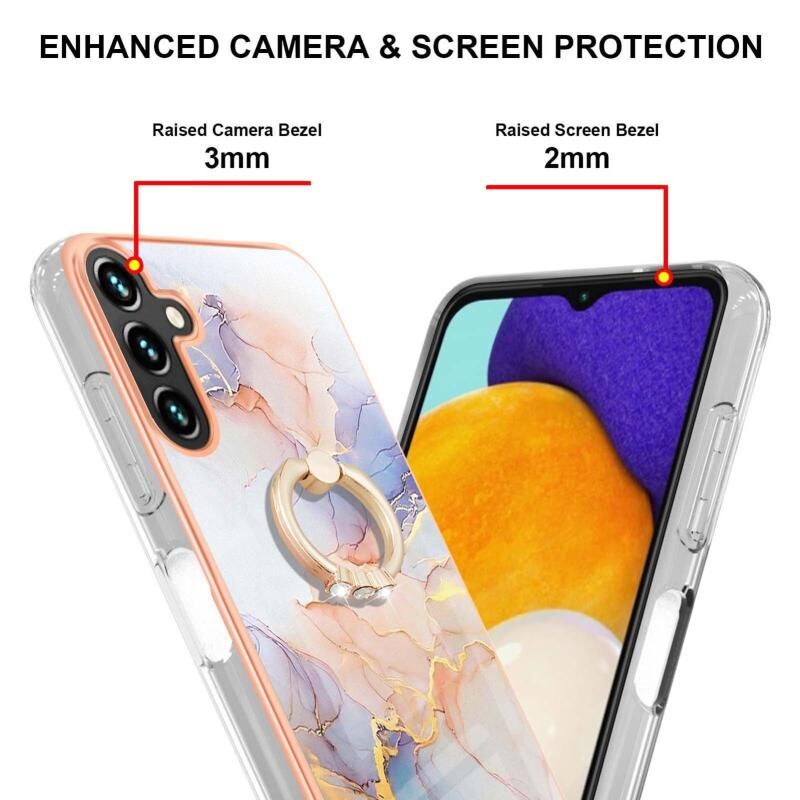 Θήκη κινητού τηλεφώνου Samsung Galaxy A54 5G με σχέδιο επιμετάλλωσης IMD TPU αντικραδασμική με βάση δακτυλιδιού (Λευκό Μάρμαρο)