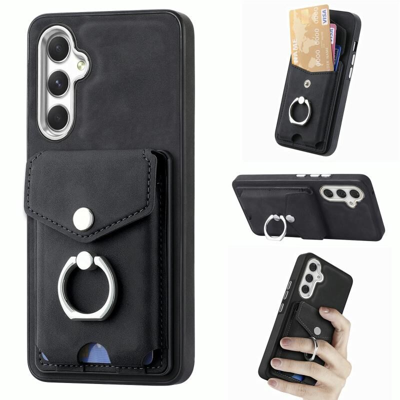 Για Samsung Galaxy A54 5G Electroplating Skin-feel δέρμα δαχτυλίδι κάρτα πορτοφόλι υπόθεση τηλεφώνου (μαύρο)