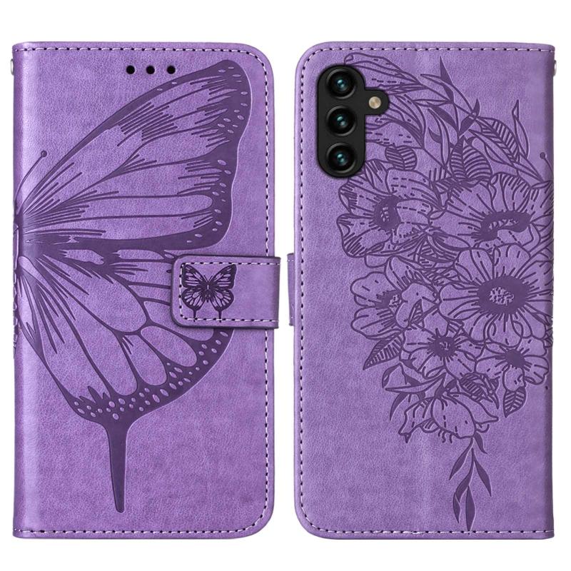 Θήκη τηλεφώνου δερμάτινη με ανάγλυφο σχέδιο πεταλούδας για Samsung Galaxy A54 5G (Μωβ)