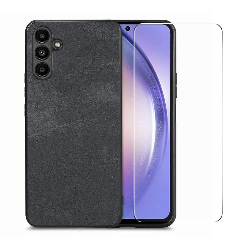For Samsung Galaxy A54 5G ENKAY Retro Leather Skin PC Phone Case with High Aluminum-silicon Glass Film(Black) (ENKAY)