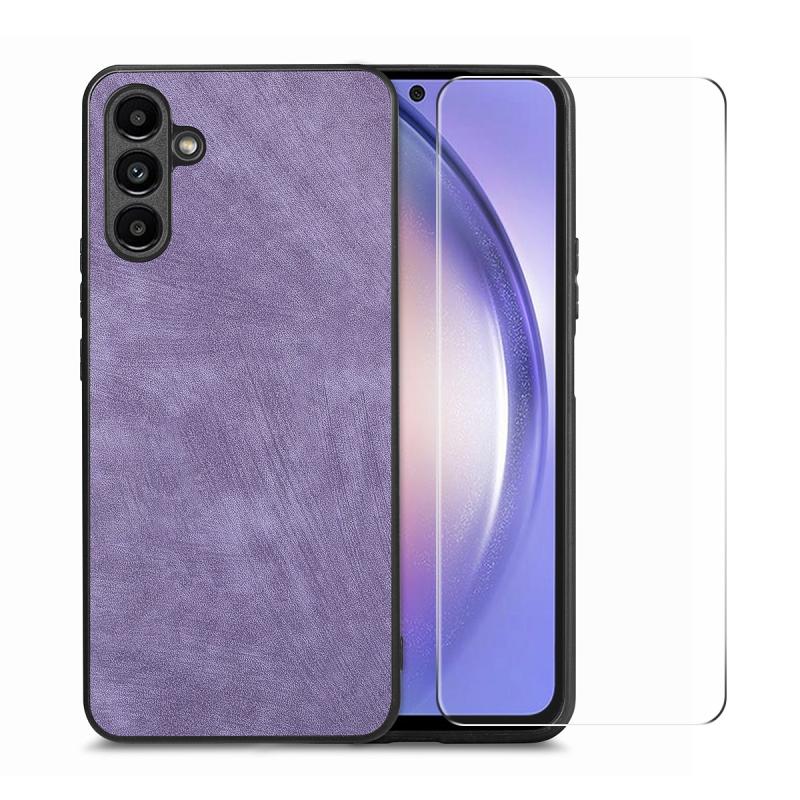 For Samsung Galaxy A54 5G ENKAY Retro Leather Skin PC Phone Case with High Aluminum-silicon Glass Film(Purple) (ENKAY)