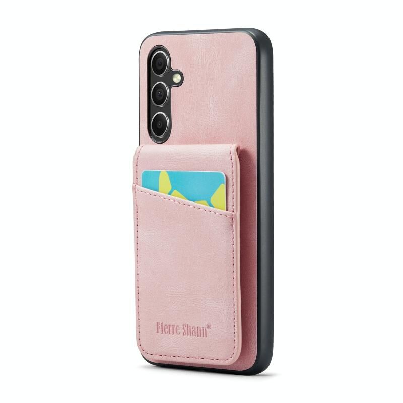 Για Samsung Galaxy A54 5G Fierre Shann Crazy Horse κάρτα κάτοχος κάτοχος πίσω κάλυμμα PU υπόθεση τηλεφώνου (ροζ) (FIERRE SHANN)