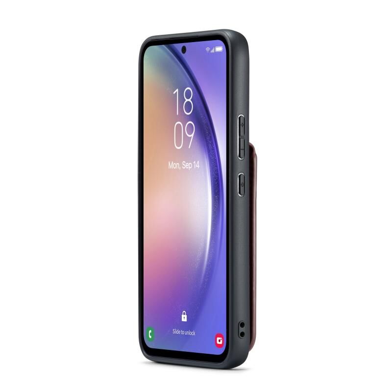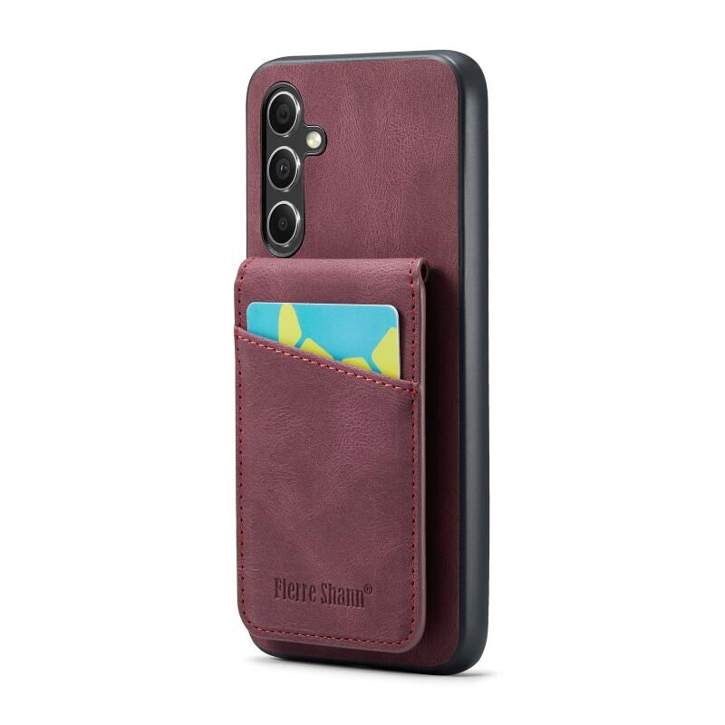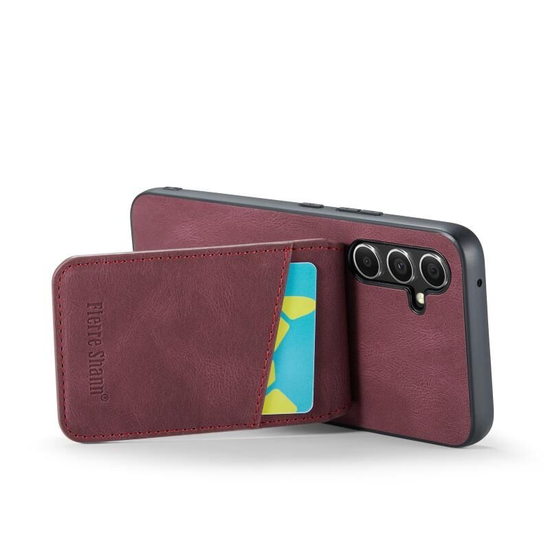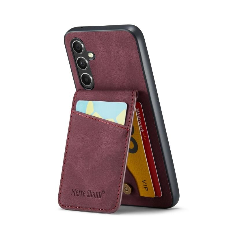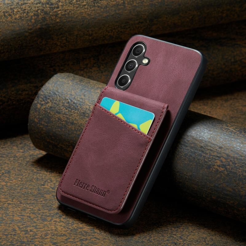 Για Samsung Galaxy A54 5G Fierre Shann Crazy Horse κάρτα κάτοχος κάτοχος πίσω κάλυμμα PU υπόθεση τηλεφώνου (κόκκινο κρασί) (FIERRE SHANN)
