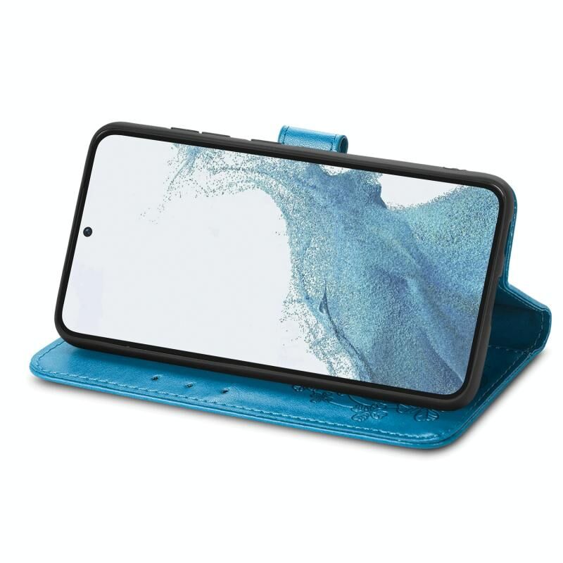 Για Samsung Galaxy A54 5G Four-leaf κούμπωμα ανάγλυφο πόρπη δερμάτινη θήκη τηλεφώνου (Μπλε)