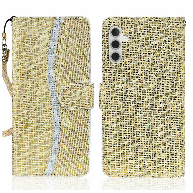 Θήκη τηλεφώνου Samsung Galaxy A54 5G από δέρμα με γκλίτερ σε σκόνη (Χρυσός)