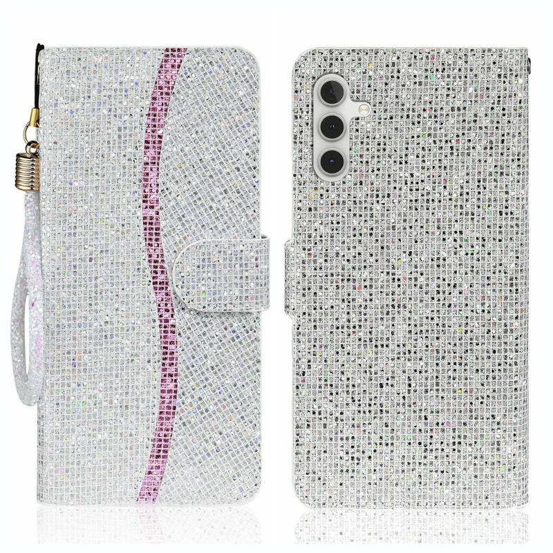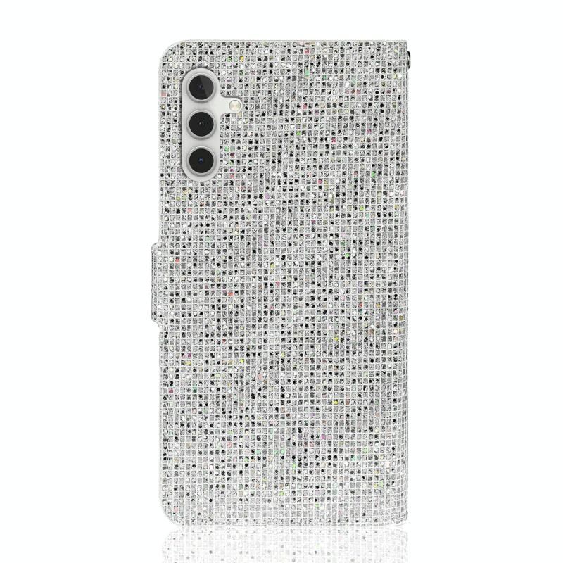 Θήκη τηλεφώνου Samsung Galaxy A54 5G από δέρμα με γκλίτερ σε σκόνη (Ασημί)
