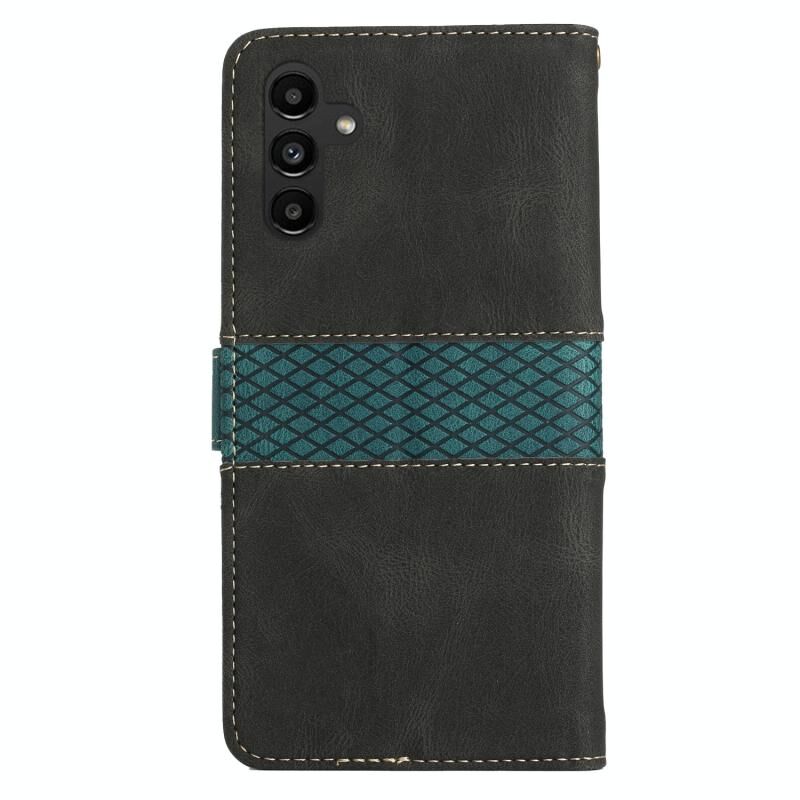 Για Samsung Galaxy A54 5G 5G Grid ραφή δερμάτινη θήκη τηλεφώνου με κορδόνι (μαύρο)