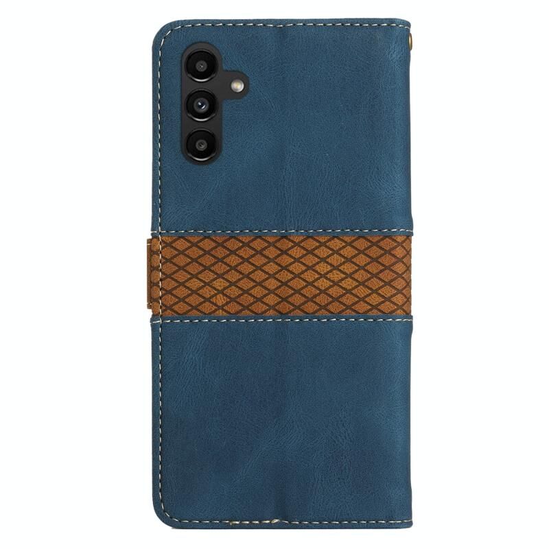 Για Samsung Galaxy A54 5G 5G Grid ραφή δερμάτινη θήκη τηλεφώνου με κορδόνι (μπλε)