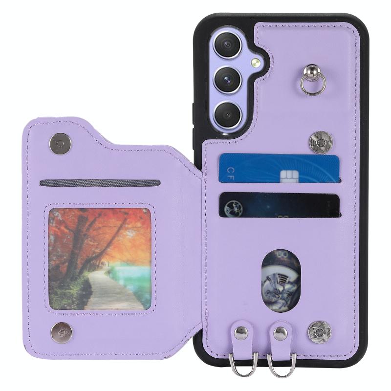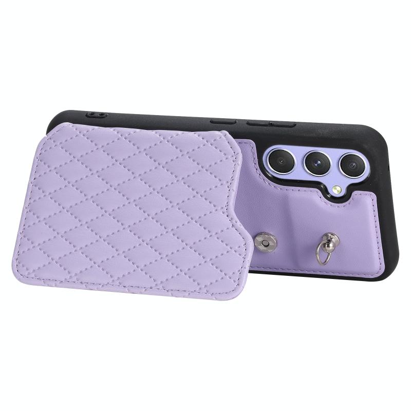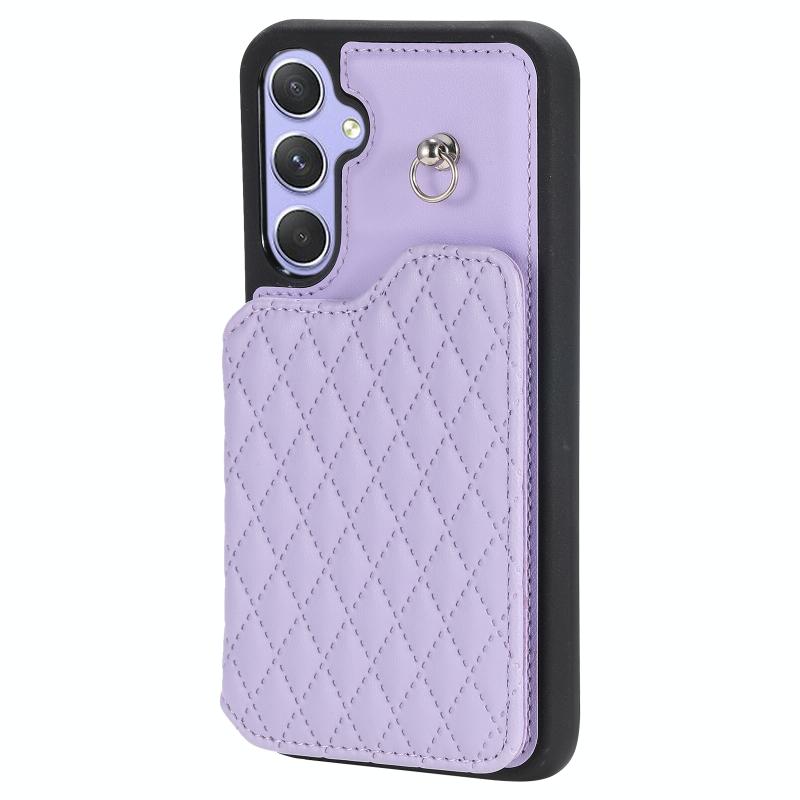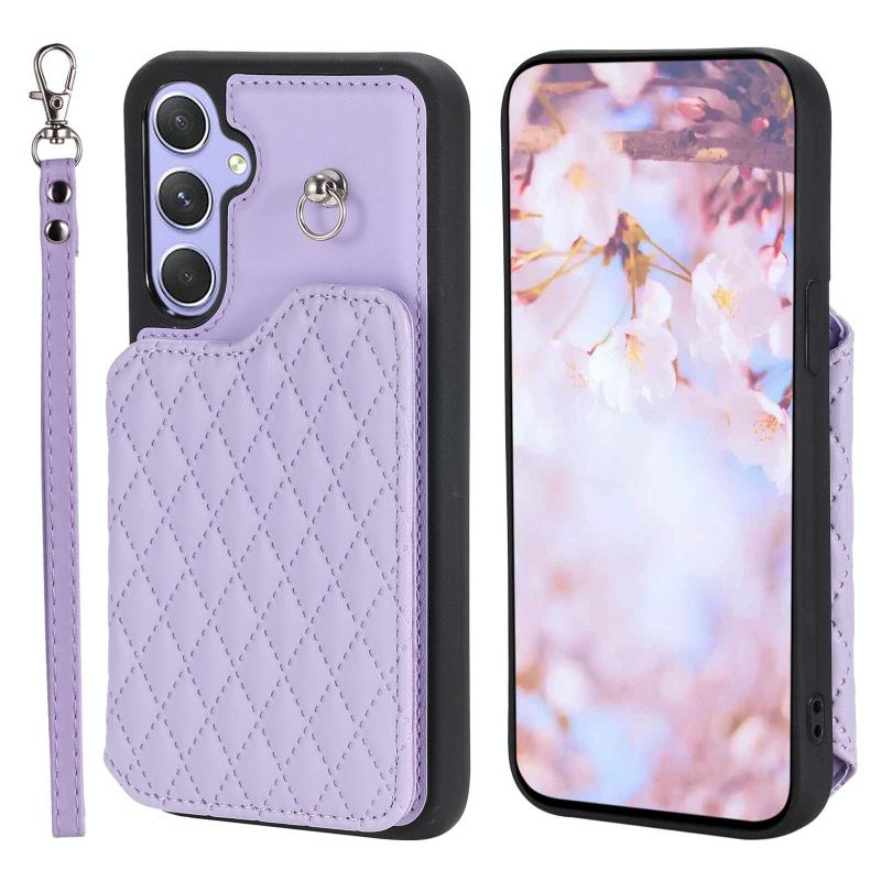 For Samsung Galaxy A54 5G Grid Texture Card Bag Phone Case with Lanyard(Μωβ)