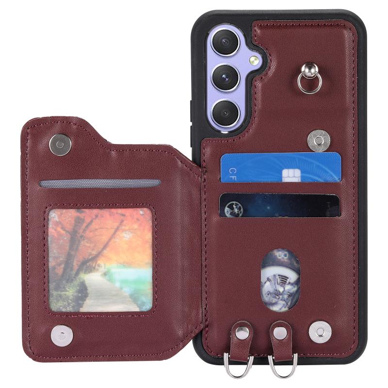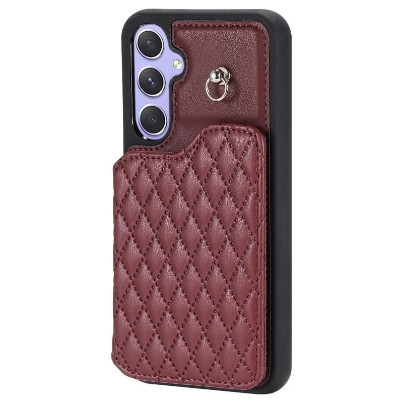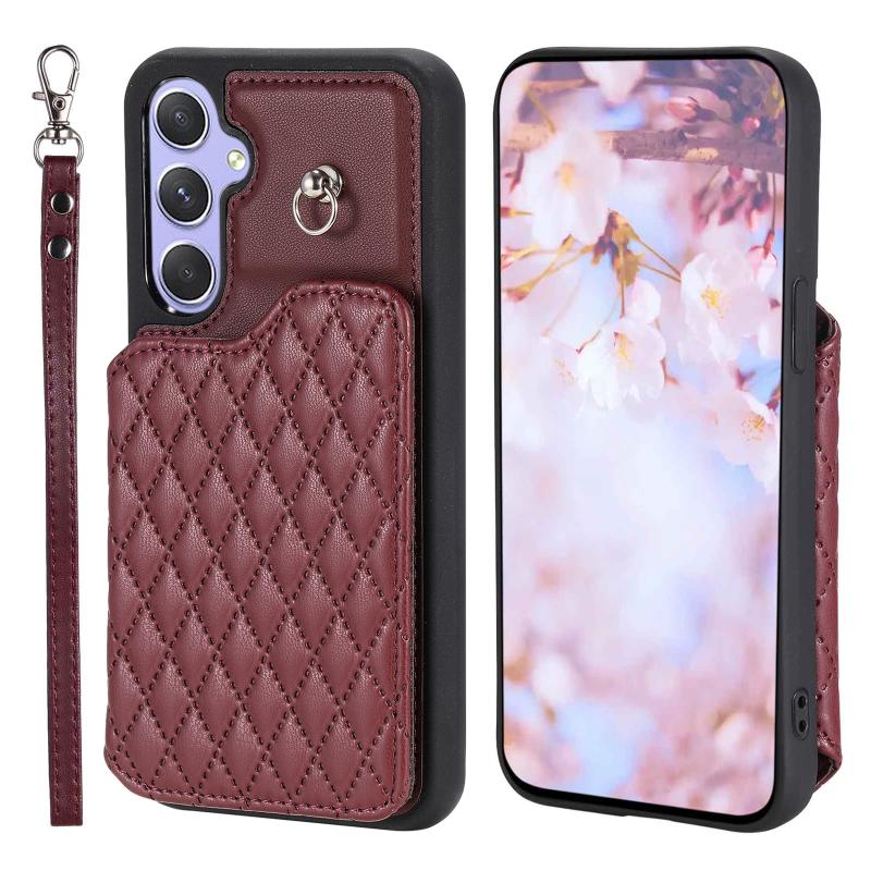 For Samsung Galaxy A54 5G Grid Texture Card Bag Phone Case with Lanyard(Κόκκινο)