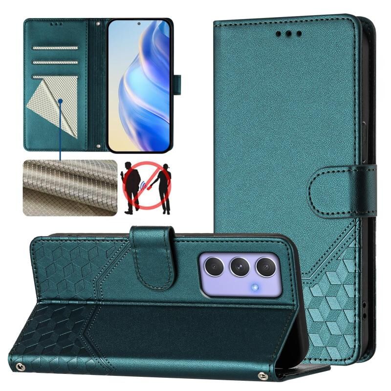Για Samsung Galaxy A54 5G 5G Honeycomb ανάγλυφο RFID δερμάτινη θήκη τηλεφώνου (Πράσινο παγώνι)