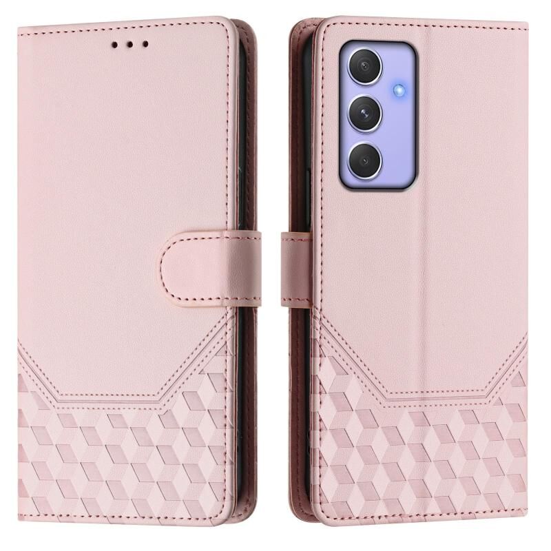 Για Samsung Galaxy A54 5G 5G Honeycomb ανάγλυφο RFID δερμάτινη θήκη τηλεφώνου (ροζ)