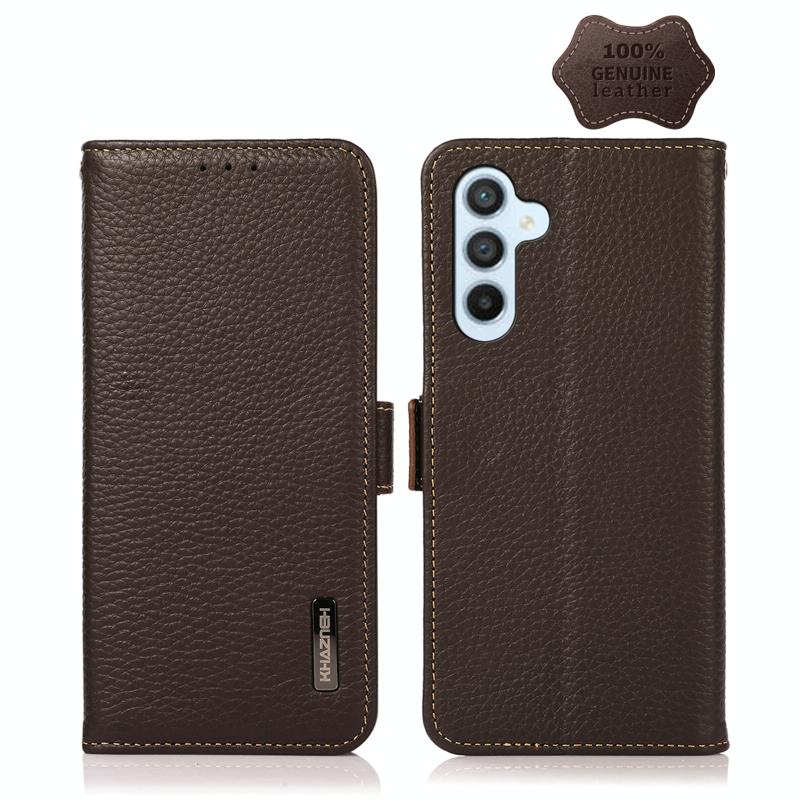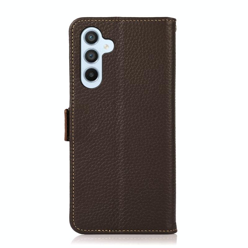 Θήκη κινητού τηλεφώνου Samsung Galaxy A54 5G KHAZNEH με μαγνητικό κλείσιμο, από γνήσιο δέρμα Litchi και προστασία RFID (Μαύρο)