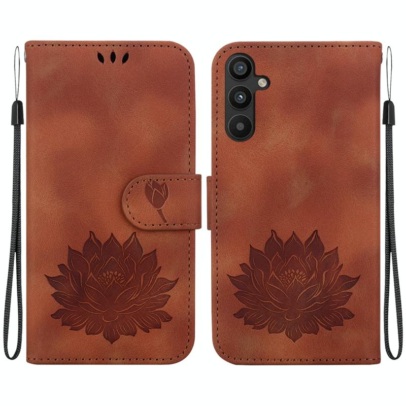 For Samsung Galaxy A54 5G Lotus Embossed Leather Phone Case(Brown)
