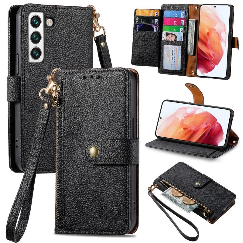 Για το Samsung Galaxy A54 5G αγάπη φερμουάρ Lanyard δερμάτινη θήκη τηλεφώνου (Μαύρο)
