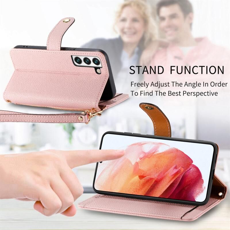 Για Samsung Galaxy A54 5G αγάπη φερμουάρ Lanyard δερμάτινη θήκη τηλεφώνου (ροζ)