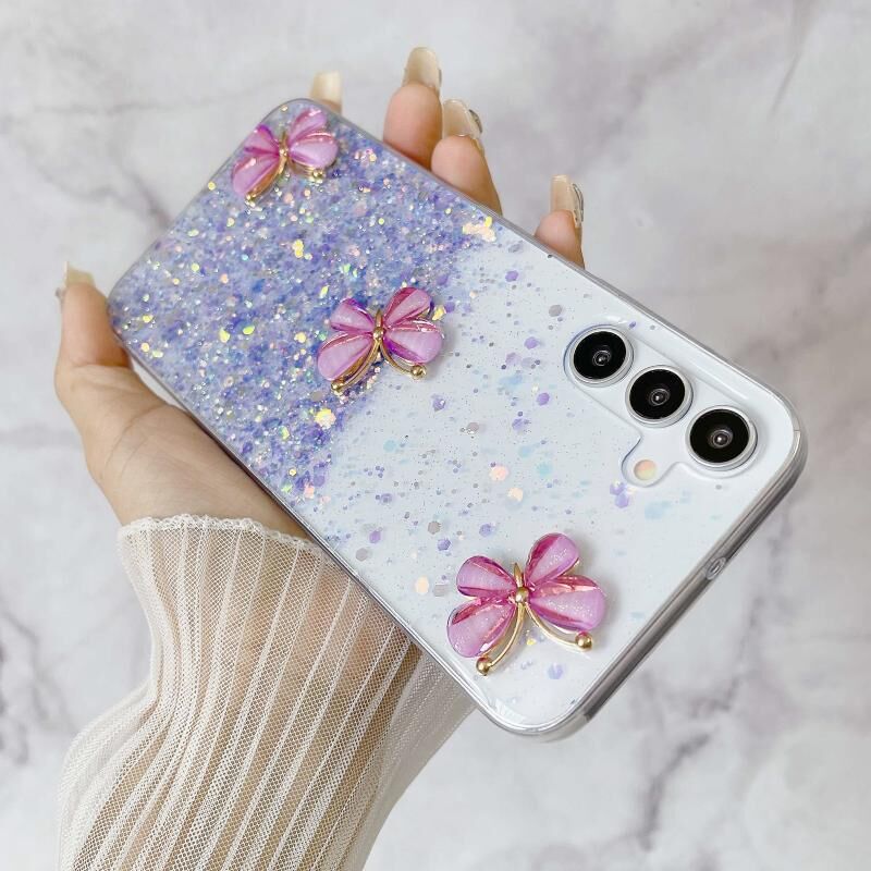 3. Κομψή και Όμορφη Εμφάνιση: Διαθέτει σχέδιο με τρισδιάστατες πεταλούδες με πολύτιμους λίθους και γκλίτερ, δημιουργώντας μια λαμπερή και πολυτελή εμφάνιση.