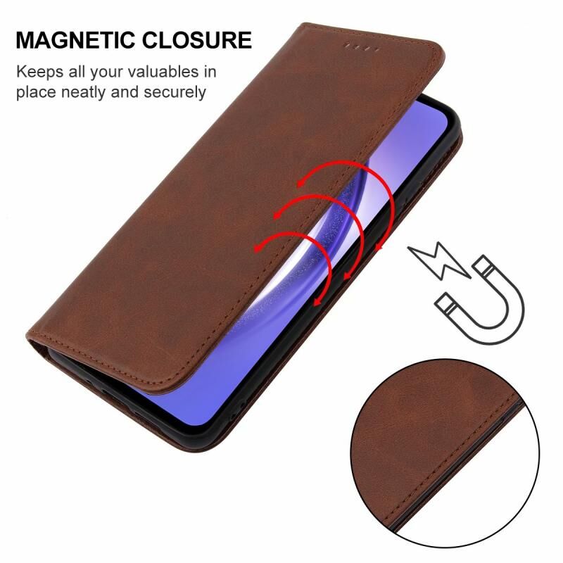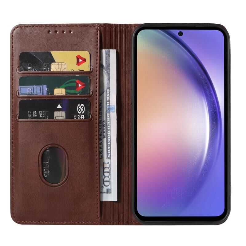Για Samsung Galaxy A54 5G Μαγνητικό κλείσιμο δερμάτινη θήκη τηλεφώνου (καφέ)