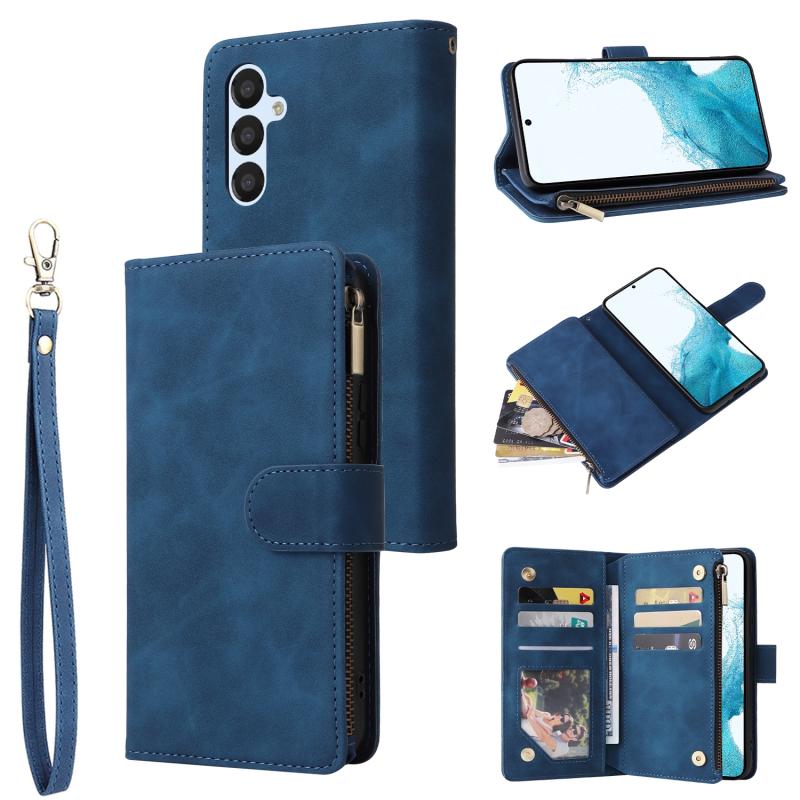 Θήκη τηλεφώνου Samsung Galaxy A54 5G από δέρμα, πολυλειτουργική, πολλαπλών καρτών (Μπλε)