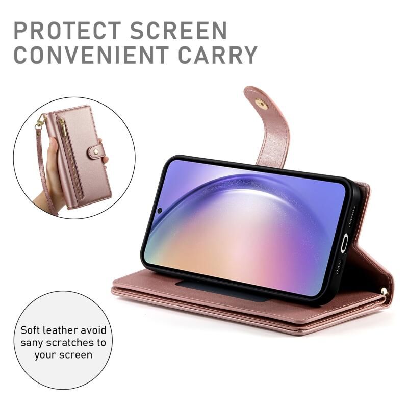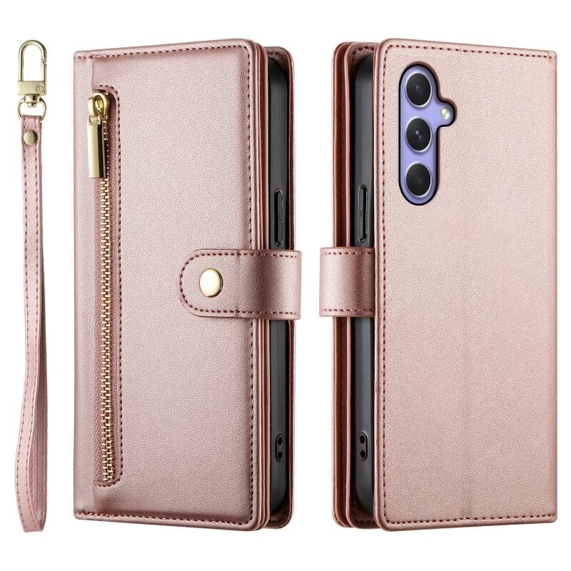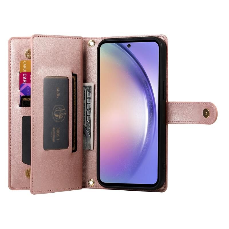 Για Samsung Galaxy A54 5G Nine Card-slot φερμουάρ πορτοφόλι τσάντα δερμάτινη θήκη τηλεφώνου (ροζ)