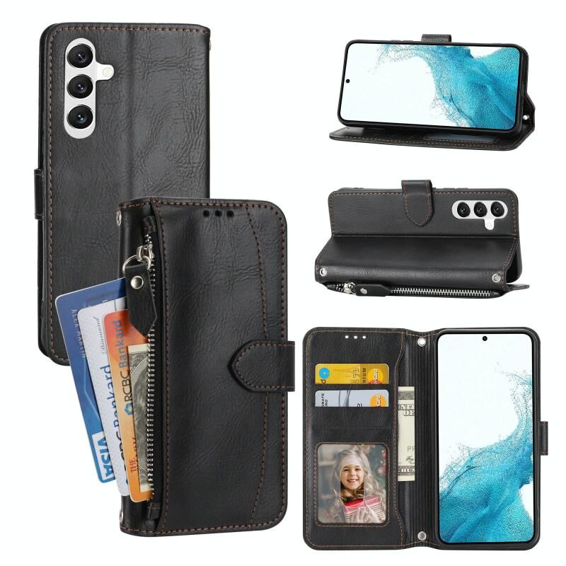 Για Samsung Galaxy A54 5G Oil Skin φερμουάρ πορτοφόλι δερμάτινη θήκη τηλεφώνου (μαύρο)