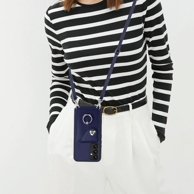 Για Samsung Galaxy A54 5G Οργανική κάρτα τσάντα τσάντα δαχτυλίδι κάτοχος υπόθεση τηλεφώνου με μακρύ κορδόνι (μπλε)