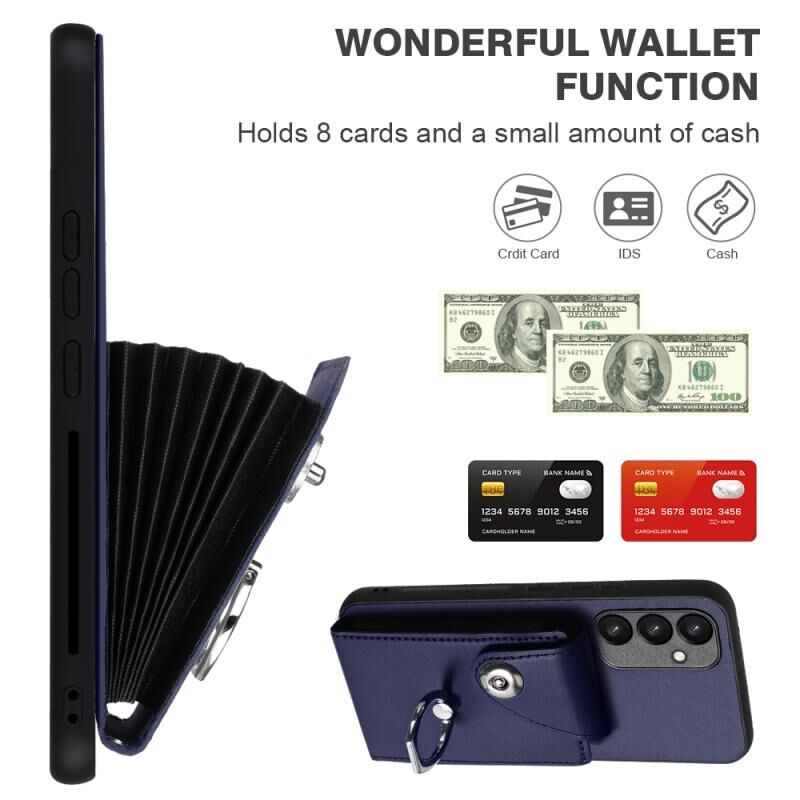 Για Samsung Galaxy A54 5G Οργάνου τσάντα κάρτα δαχτυλίδι τσάντα κάτοχος PU υπόθεση τηλεφώνου με κορδόνι (μπλε)