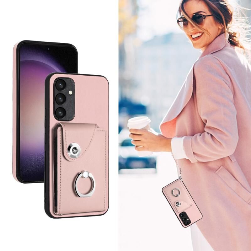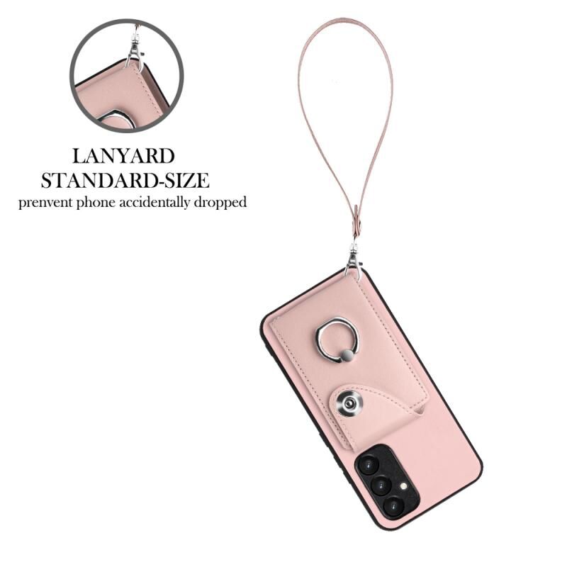 Για Samsung Galaxy A54 5G Οργάνου τσάντα κάρτα δαχτυλίδι τσάντα κάτοχος PU υπόθεση τηλεφώνου με κορδόνι (ροζ)
