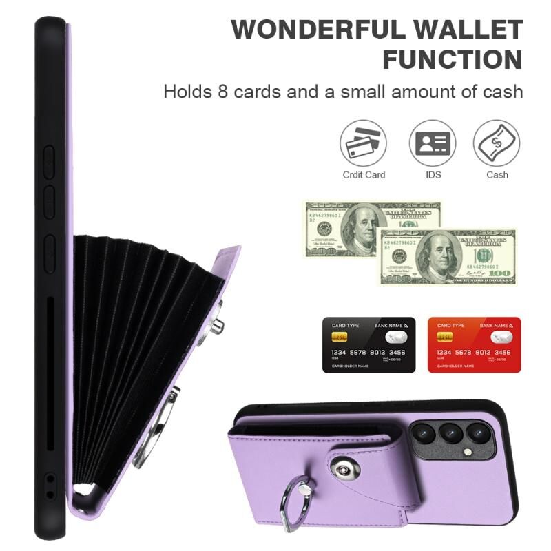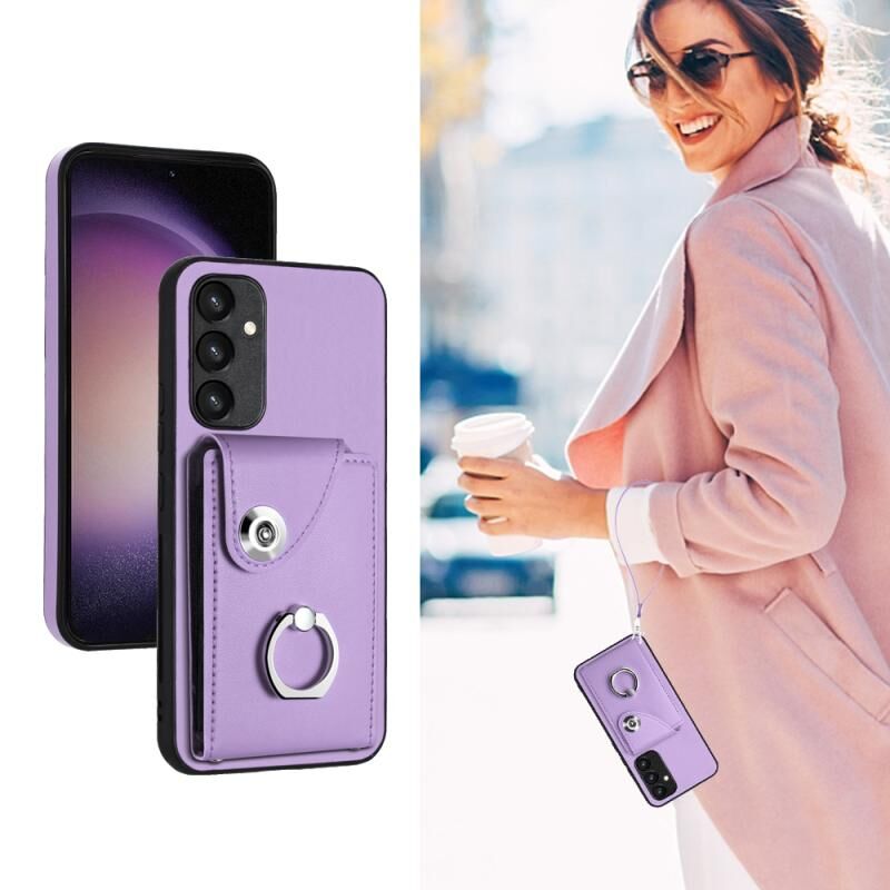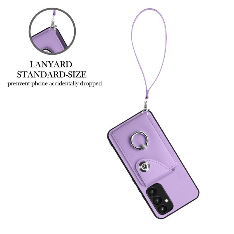 Για Samsung Galaxy A54 5G Οργάνου τσάντα κάρτα δαχτυλίδι τσάντα κάτοχος PU υπόθεση τηλεφώνου με κορδόνι (μωβ)