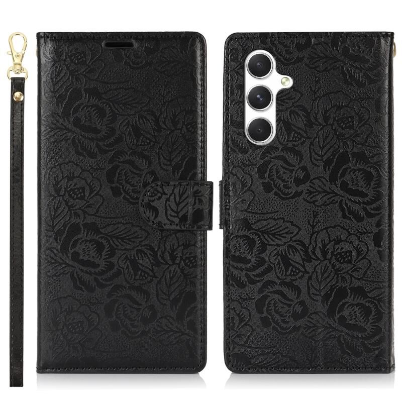 For Samsung Galaxy A54 5G Peony Flowers Imprint Leather Phone Case(Black)